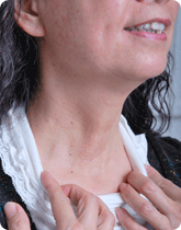 任職保安員的唐女士,在2006年時發現右邊頸部出現腫脹情況,「時大時細」,往醫院求診卻找不出病因。2年後,她的右邊頸項已明顯腫脹,無論外觀與日常生活也大受影響,遂決定再次求醫,經血液檢查,證實出現甲狀腺亢進毛病。